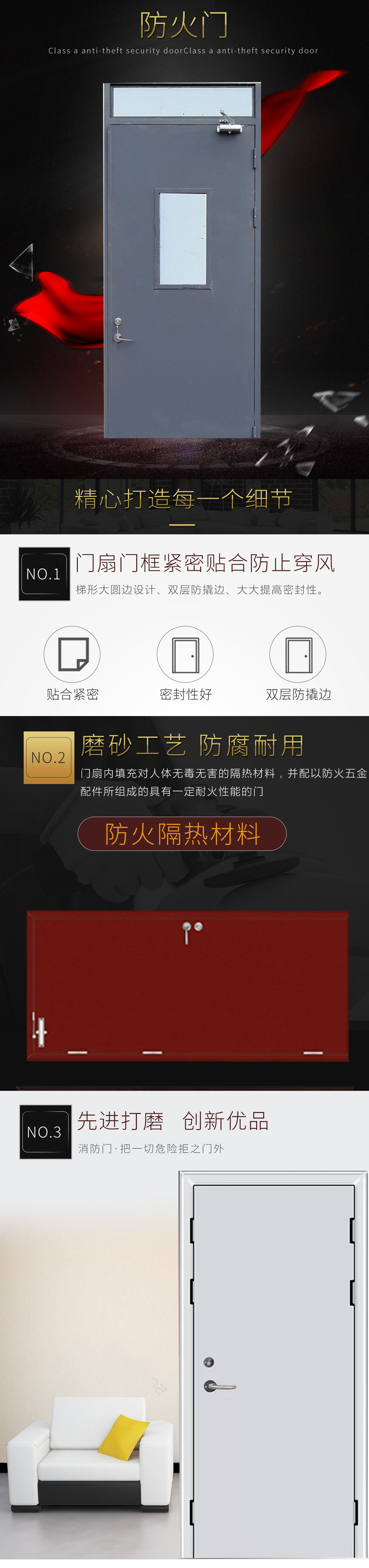 防火门是指在一定时间内能满足耐火稳定性、完整性和隔热性要求的门。主要用途在于防火,有很强的耐火力,因而选用的资料必要要有高度耐烧、耐高温,不止本身不开释有毒气体并且可以极好的阻挠有毒气体进入。通常来说,防火门具有外表润滑平坦、美观大方、开启灵敏、坚固耐用、使用方便、安全可靠等特色。按材料分有木质防火门、钢质防火门、钢木防火门、其他防火门等等。